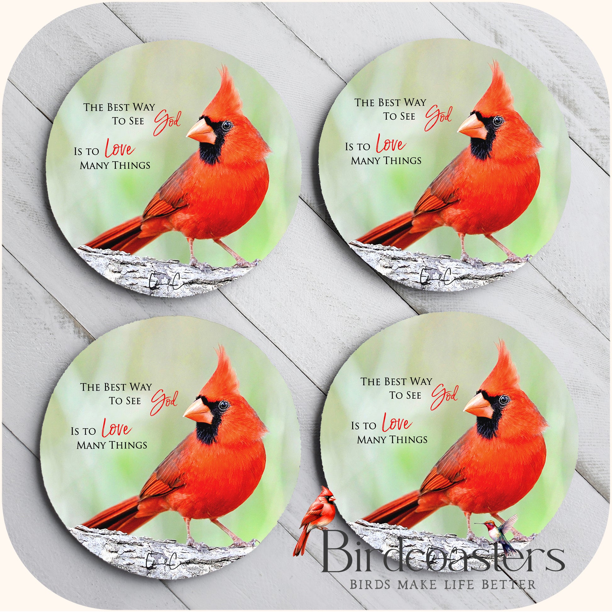 This piece features a solitary cardinal paired with a simple truth - The best way to see God, is to love many things.