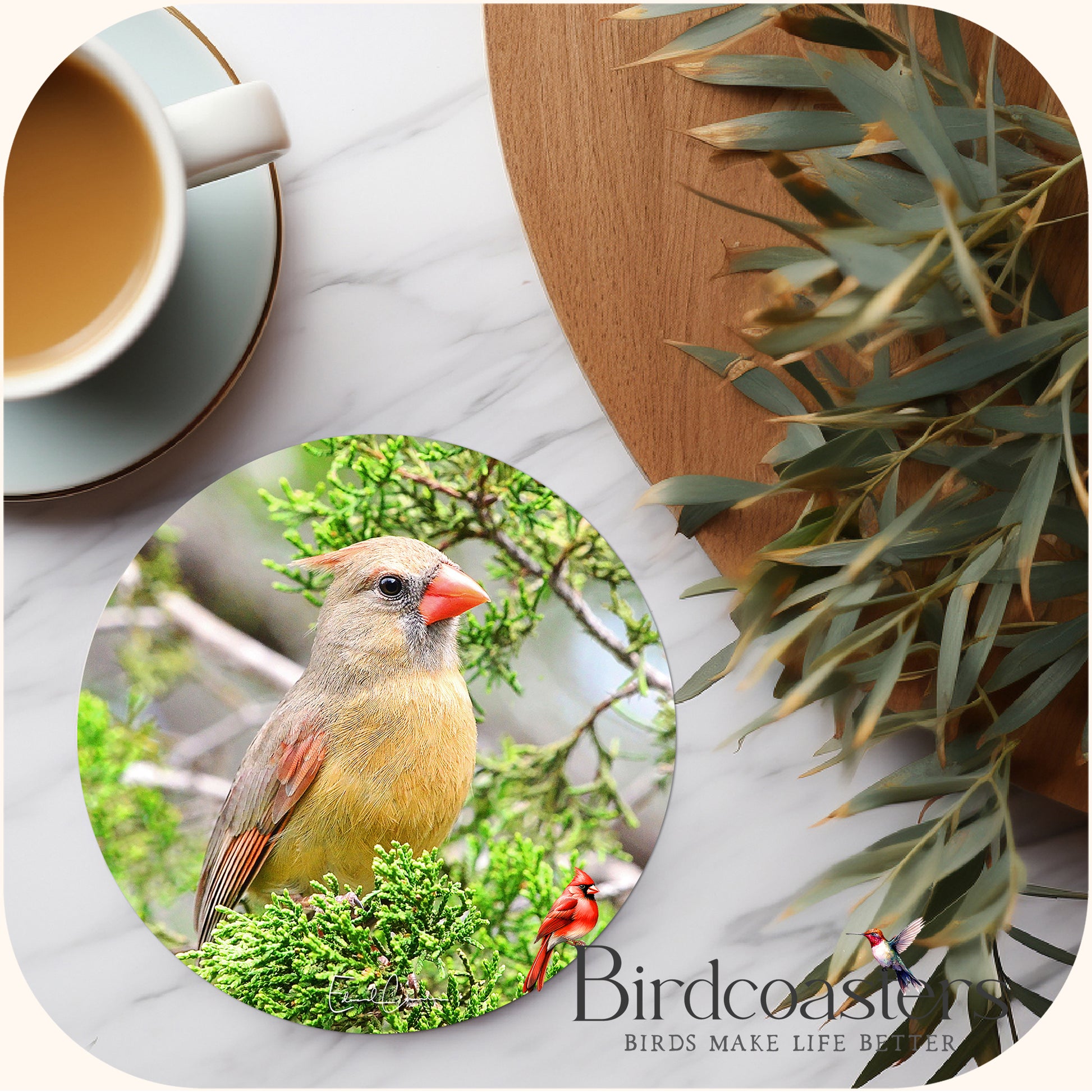 Let this lady Cardinal offer a quiet sense of guardianship, warmth, and woodland calm to the spaces you love.