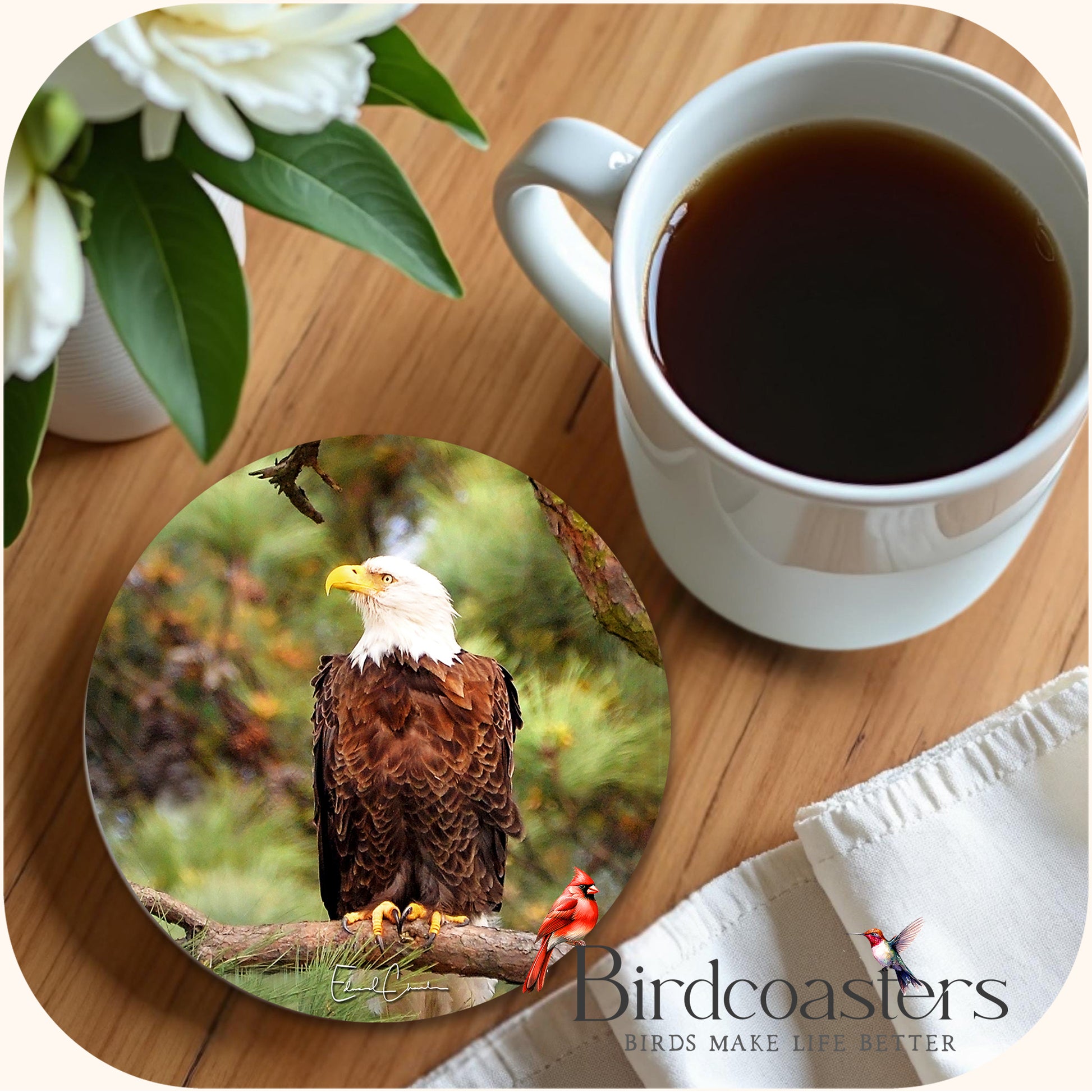 Theres a hush in the trees when an eagle appears - a quiet strength that seems to rule the forest. This moment captures an eagle perched high above the forest floor, watching over everything with calm confidence.