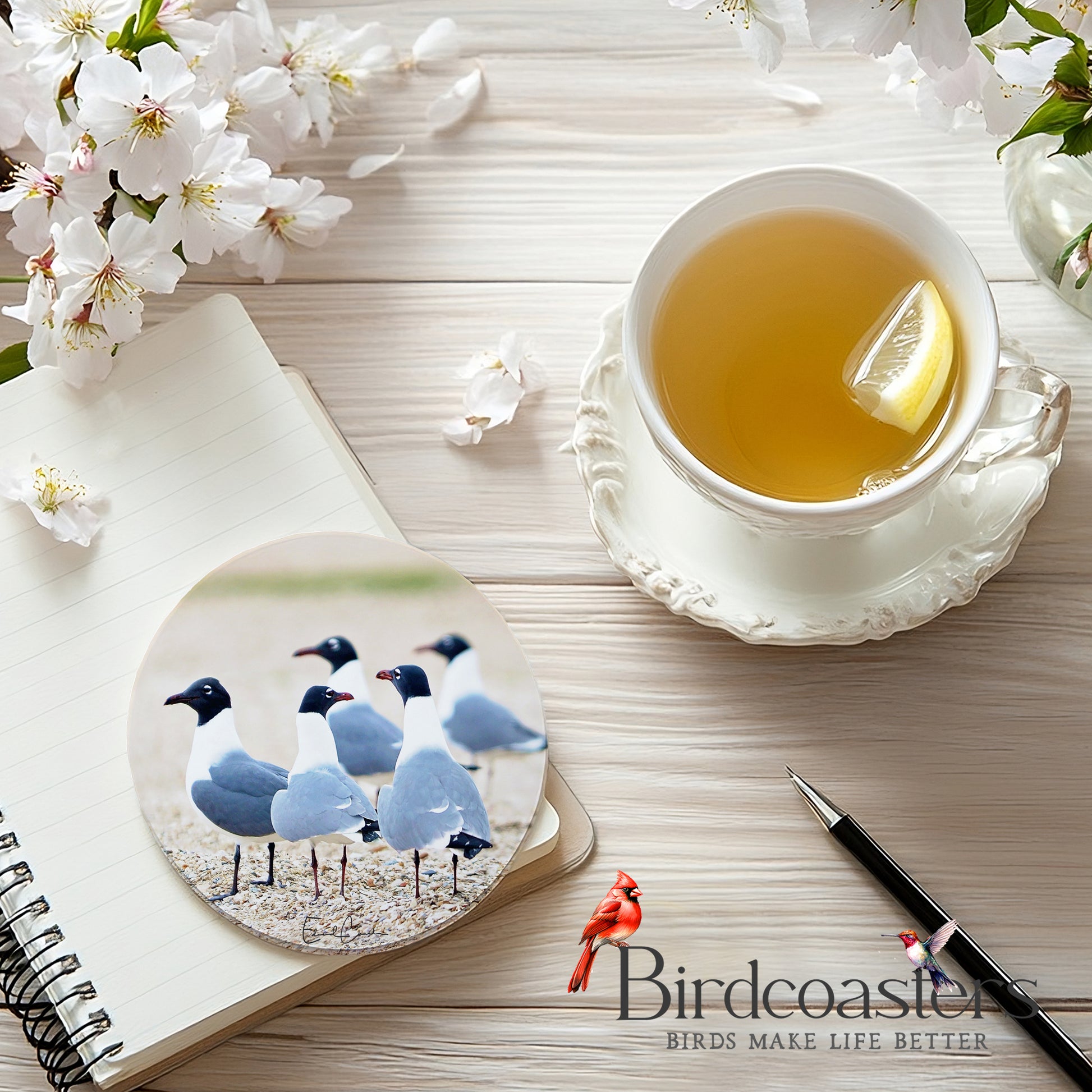 This playful scene captures a flock of seagulls pausing at the shoreline - curious, expressive, and full of beach-day energy. A moment of whimsy, softened by the quiet beauty of the coast.